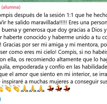 Comparte tus avances, bloqueos, miedos y logros con mujeres que te entienden y te sostienen, sin juicios. Sientes tu empoderamiento crecer cada día.